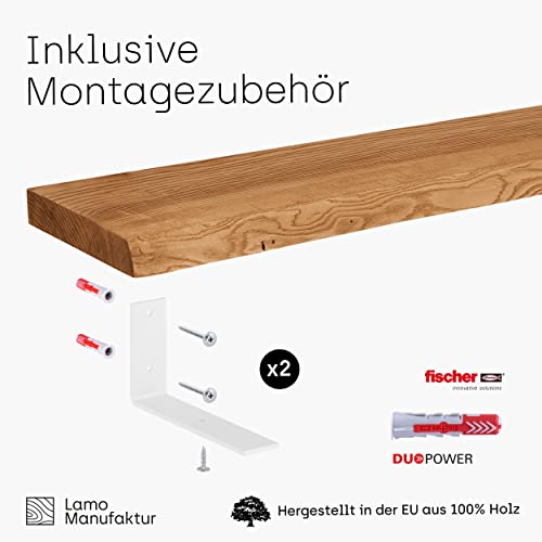 Prodotto esclusivo in legno massello: mensola a muro artigianale in legno naturale al 100% - unico bordo levigato - realizzata da una manifattura con tradizioni nell'UE - profondità: 18-20 cm - disponibile nelle lunghezze 40-160 cm