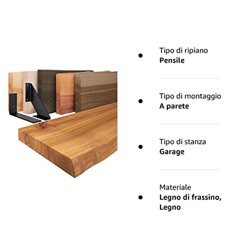 Prodotto esclusivo in legno massello: mensola a muro artigianale in legno naturale al 100% - unico bordo levigato - realizzata da una manifattura con tradizioni nell'UE - profondità: 18-20 cm - disponibile nelle lunghezze 40-160 cm