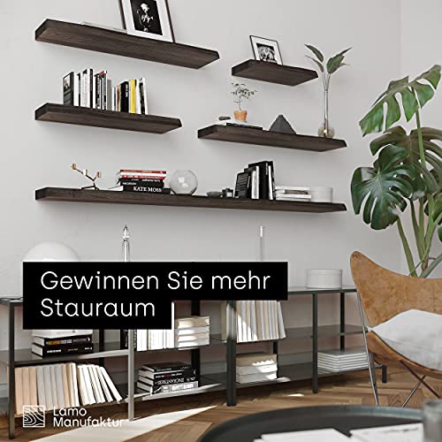 LAMO Manufaktur mensola in legno con bordo naturale, mensola sospesa modello Invisible, colore Nero 60cm, LW-01-A-004-60W