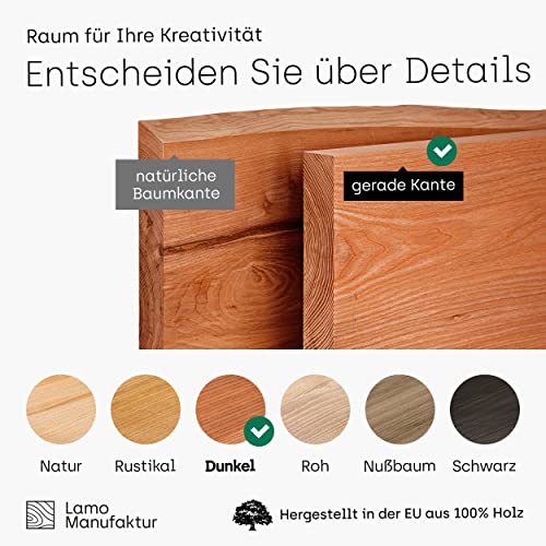 Qualità in ogni dettaglio: ripiano solido spesso 38-40 mm - estremamente stabile e durevole - massima capacità di carico: 120 kg - per mantenere per anni il bell'aspetto del legno, rivestire il ripiano con un detergente per legno selezionato (es. Olio-cera) / doppio strato di olio-cera - ogni ripiano è contraddistinto da venature irregolari, nodi e graffi, che lo rendono assolutamente unico