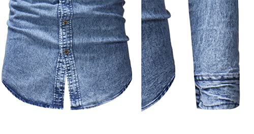 MANYMANY Camicie di Jeans per Uomo Camicia di Jeans Occidentale Camicie di Jeans abbottonate Camicia di Jeans a Coste Lavata Blu Taglia M-3XL