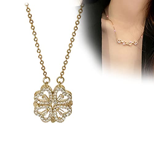 MAOBU Collana Quadrifoglio, Retro Magnetico 2 in 1 Pieghevole Cuore d'Amore Ciondolo Quadrifoglio, Regalo di San Valentino per Donne Ragazze
