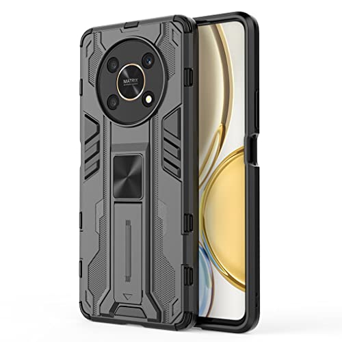 MAOGE Cover per Honor Magic4 Lite 5G, [Militare Anti-Caduta] Cornice Paraurti in Silicone Morbido Ultra Sottile Custodia, con Supporto Pieghevole Nascosto Kickstand - Nero