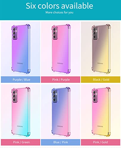 MAOGE Cover per Samsung Galaxy M13 Cover, Ultra Sottile Custodia in TPU a Gradiente Colori, Trasparente Silicone Morbido Case Antiurto Cover, Rosa/Viola