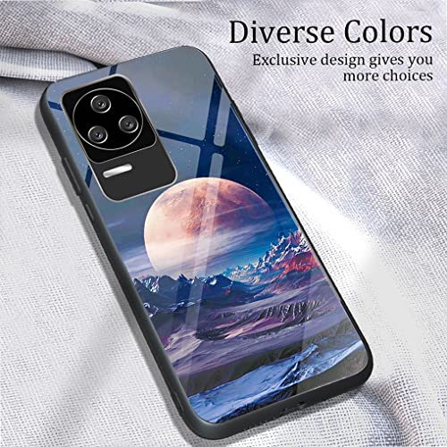 MAOGE Cover per Xiaomi Poco F4 5G, Custodia Ultra Sottile in Silicone TPU, Retro in Vetro Temperato a Elegante Motivo Dipinto Antiurto AntiGraffio Case, Canzone di Luna