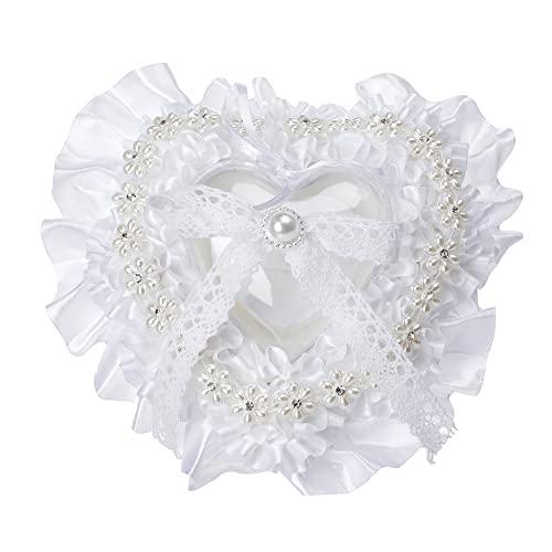 La confezione include: 1 cuscino ad anello a forma di cuore bianco (anelli non inclusi). Dimensioni: 18 x 20 cm (lunghezza x larghezza).