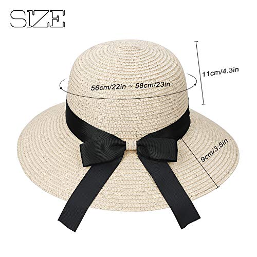MaoXinTek Cappello di Paglia Pieghevole Tesa Larga Cappelli da Sole Donna Cappello da Spiaggia con Decorativo Nodo di Prua per Vacanze attività All'aperto