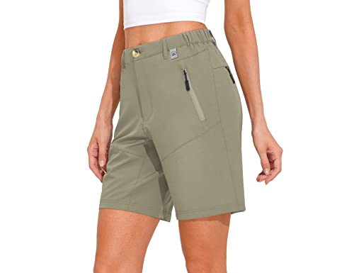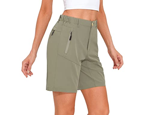 Mapamyumco - Pantaloncini elasticizzati ad asciugatura rapida, da donna, per escursioni, campeggio, viaggi, con cerniera, tasche, B2 Salvia, XS