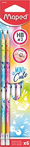 Maped - Matita Mini Cute HB con testina in gomma, 6 pezzi