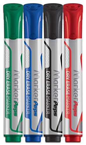 Maped - Pennarelli cancellabili a secco, confezione da 4, blu, nero, rosso, verde, punta a ogiva larga 2 mm, lavagne bianche, ardesie e superfici non porose