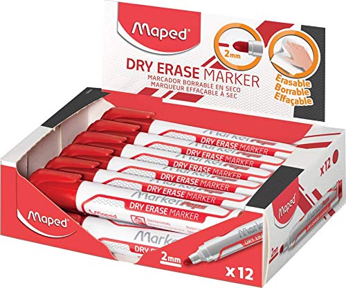 Maped - Pennarello cancellabili a secco, 12 pezzi, punta tonda larga 2 mm, lavagne bianche, lavagne e superfici non porose