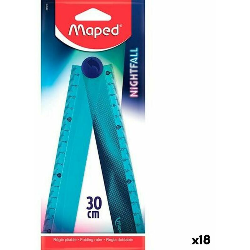 Torna in ufficio senza dimenticarti di nulla! Compra Righello Maped Nightfall Azzurro Plastica 30 cm 18 Unità e sarai l'invidia dei tuoi colleghi! Colore: Azzurro Materiale: Plastica Caratteristiche: Pieghevole Antiurto Lunghezza: 30 cm Design: Piano Unità: 18 Unità