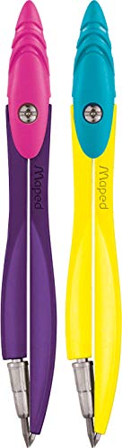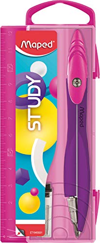 Maped - Scatola di compasso con attacco universale per penne STUDY POP - Giallo/Turchese, lilla/rosa