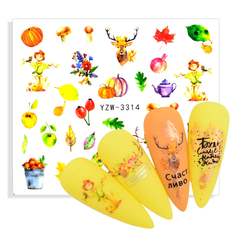 1pcs Maple Leaves Stickers For Nails Animal Design Water Tranfer Decals Nail Art Sliders Manicure Decorations