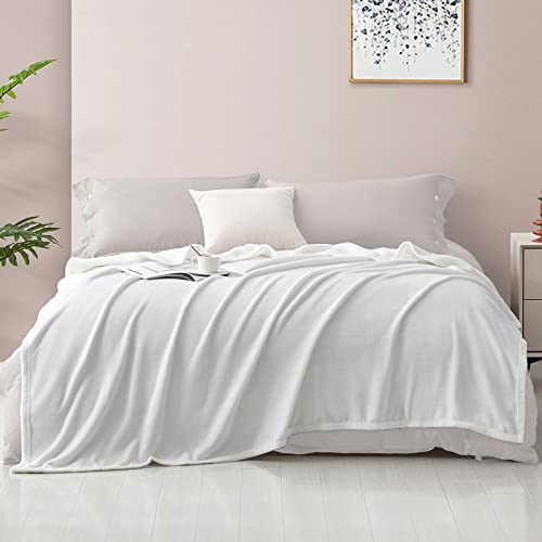 Maple&Stone Coperta per Letto Matrimoniale - 300 GSM Pile Di Flanella Calda Coperta per Divano in Tutte le Stagioni Morbida e Confortevole 100% Poliestere,Bianco 150x200cm