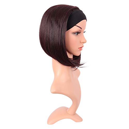 MapofBeauty 12 Pollic/30 cm Headband parrucca Corto Bob Kinky Lisci Alto Temperatura Sintetico fibra Capelli Parrucche (Scuro Marrone)