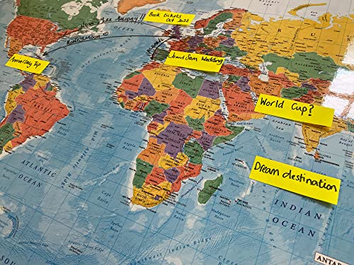 Mappa del Mondo, con Cornice in Legno Nero, Include 100 spilli, 96,5 x 66 cm
