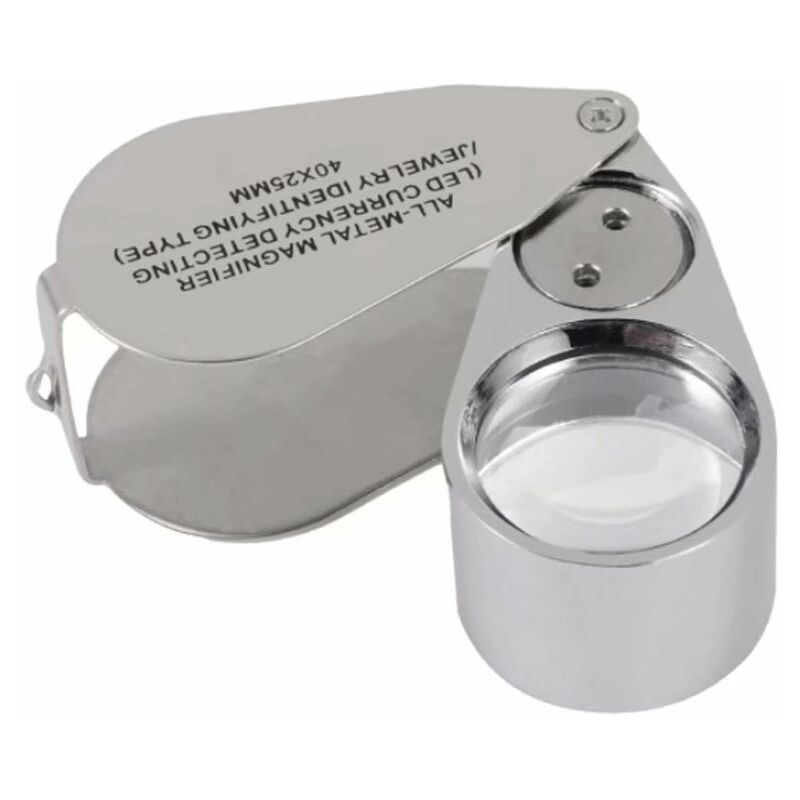 LED e UV: è possibile vedere chiaramente gli oggetti con questa doppia fonte di luce a LED notturna o in condizioni di scarsa illuminazione. La luce UV del rilevatore funziona come un biglietto per tale carta, passaporto, carte di credito e controlli di viaggio, ecc. Tasca: è molto facile da trasportare e puoi usarlo n 'dove. Richiede 3 batterie LR1130 (comprese le batterie). Funzione: Lente d'ingrandimento per gli occhi è ideale per collettori di roccia, monete, gioiellieri, hobby creativi e anche un grande regalo per i bambini per esplorare il favoloso mondo piccolo. pieghevole: sparare i gioielli della lente d'ingrandimento da usare e indietro Caso di mancato uso. Questa lante di ingrandimento della lente d'ingrandimento luminosa 40 x è costruita in metallo resistente con un vetro ottico è lungo 25 mm e ha un doppio LED. .Caratteristiche: Dimensione del prodotto: circa 11,6 x 3 cm Tensione 1.5 v Diametro: 25 mm on off interruttore illuminazione: LED e con rilevamento valuta UV