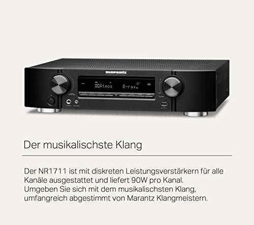 Marantz NR1711 - Ricevitore AV a 7.2 canali, amplificatore HiFi, compatibile con Alexa, 6 ingressi HDMI e 1 uscita, video 8K, Bluetooth, WLAN, streaming musicale, Dolby Atmos, AirPlay 2