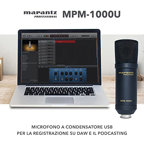 Marantz Professional MPM-1000U - Microfono PC USB a Condensatore con Diaframma Largo per il Podcasting e la Registrazione, Reggimicrofono e Cavo USB