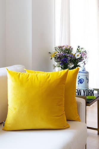 MARARDI Pack da 2 Federe per Cuscino in Morbido Velluto [Giallo] 45x45 cm con [Cerniera Invisibile] Decorativo Letto Divano Sedia Camera Cucina Giardino Soggiorno Studio e Ufficio