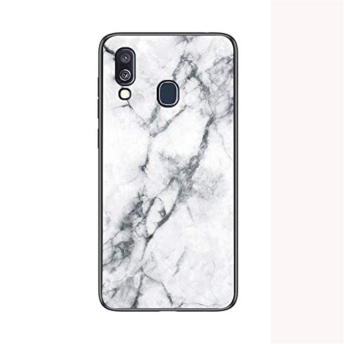JZ Marble Glass Custodia for per Samsung Galaxy A40 with [Soft Edge + TemFor Pered Glass Back Cover] - White Marble