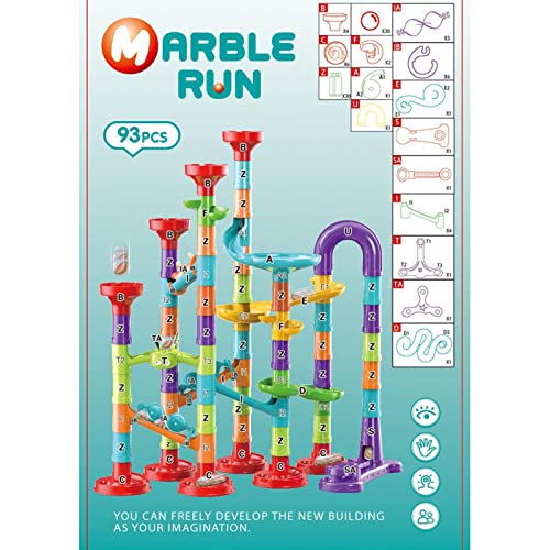 Marble Run Premium Set per Bambini, Gioco del Labirinto di Marmo Costruzione di Blocchi di Costruzione Giocattoli Torre, Pista di Marmo Impilato STEM Giocattoli Educativi per Ragazzi Ragazze, 93Pezzi