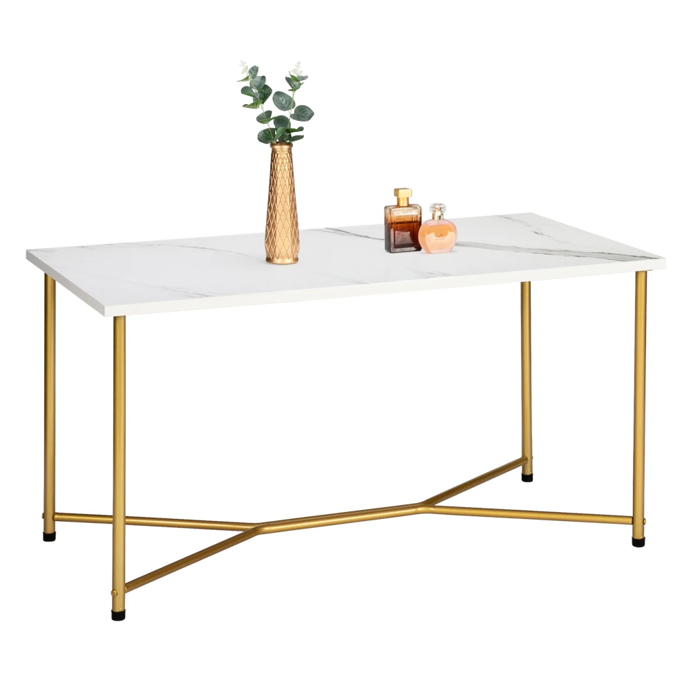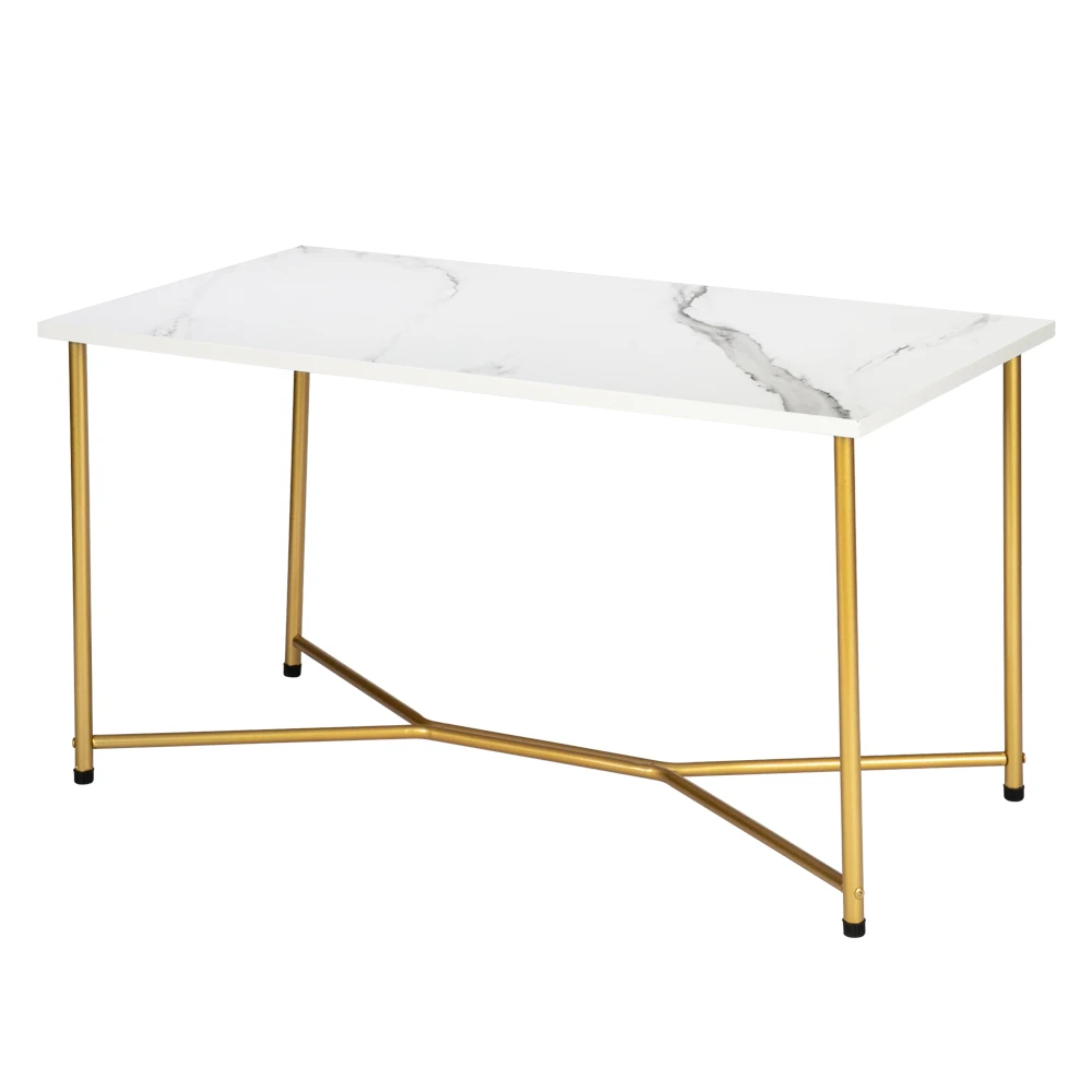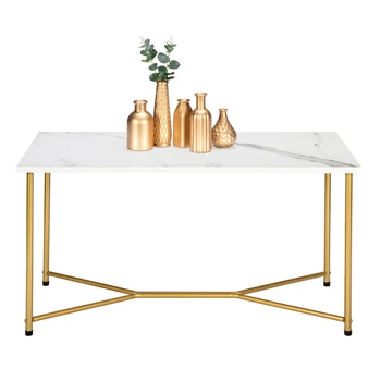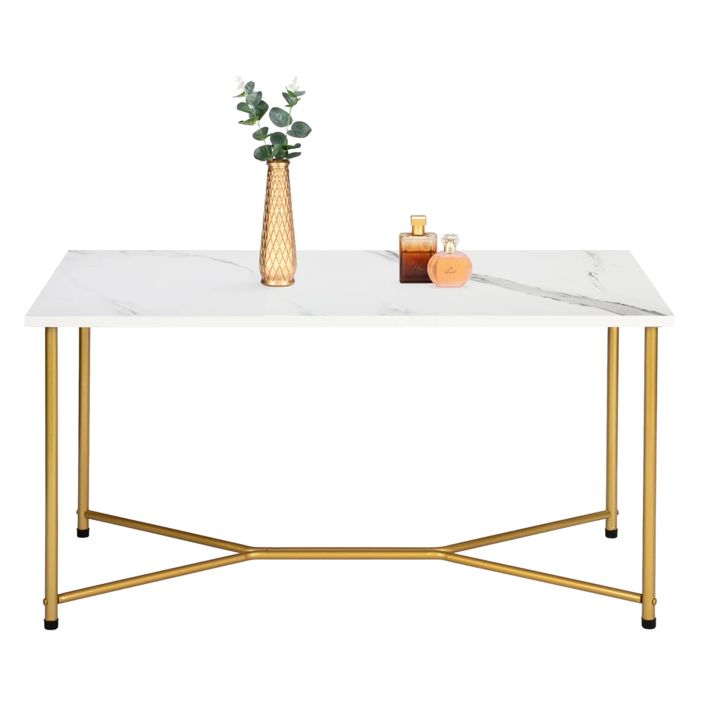 Marble Square Table Top Gold Foot Iron Coffee Table Side Table White HODELY Single Layer 1.5cm Thick Density Board Imitation