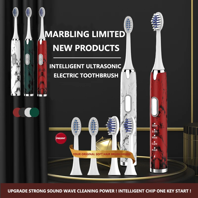 Marbling Smart Electric Toothbrush, Rechargeable USB, IPX7 Waterproof