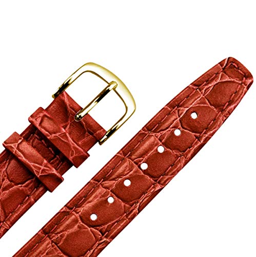 Design: classico cinturino di ricambio in pelle bovina per orologi, in colore rosso/marrone. Cinturino in pelle con design a coccodrillo. Cinturino tradizionale con cuciture in colore abbinato;