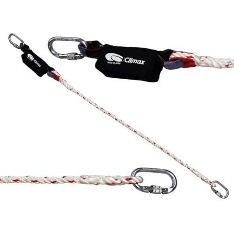 ASSORBITORE DI ENERGIA PER IMBRACATURE CLIMAX ART.37/30A Componente un sistema anticaduta. Assorbitore di energia con elemento di ancoraggio in poliammide ad alta tenacità Ø 14 mm., lunghezza 1,70 mt. e moschettone ovale in acciaio zincato anticorrosione chiusura di sicurezza automatica e blocco manuale, Ø 16 mm.