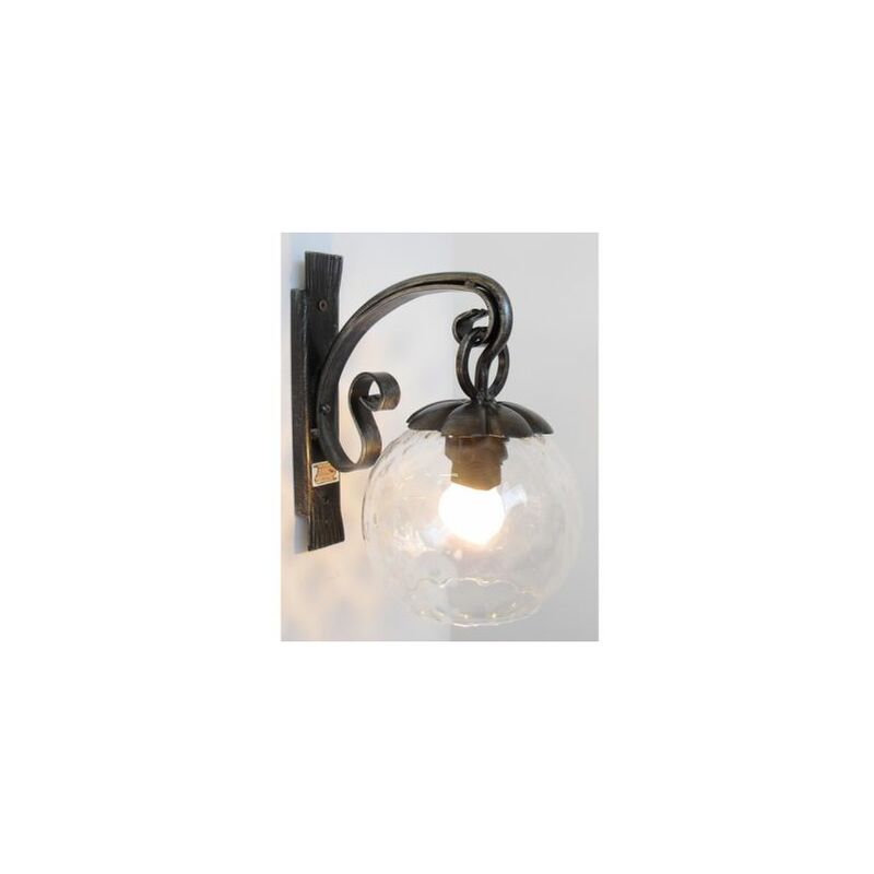 In ferro battuto e vetro martellato, attacco E27.