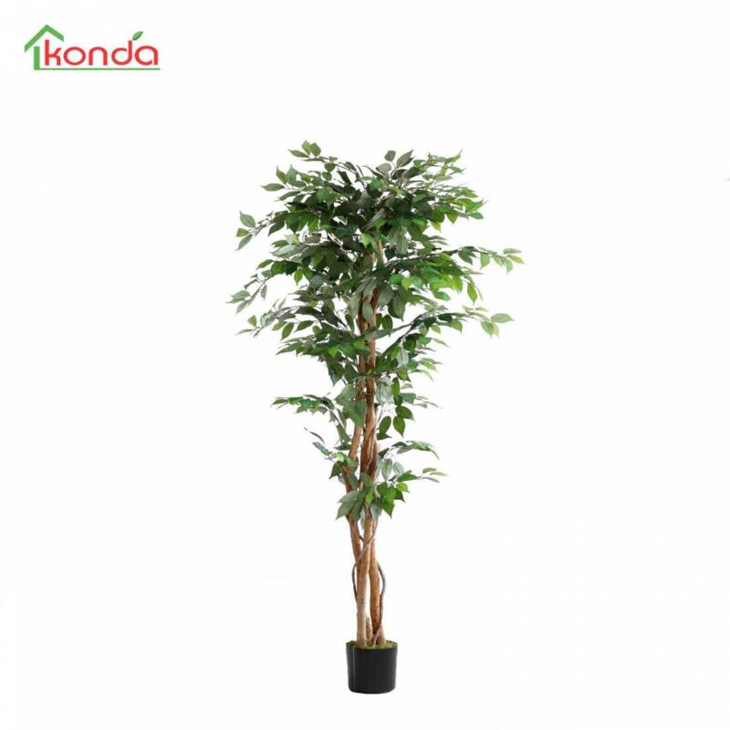 Pianta ornamentale in materiale plastico comprensivo di base. Altezza di circa 180 cm. Composto da tre tronchi, numerosi fusti di aspetto naturale e rametti sui quali si distribuiscono 1.008 foglie di colore verde. L'offerta ed i prezzi si riferiscono a 2 pz. per confezione