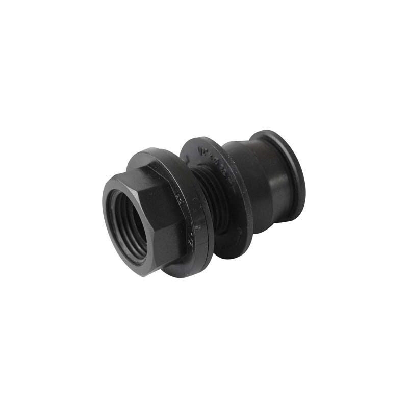 RACCORDO PER CISTERNA In polipropilene rinforzato con fibra di vetro. Estremità filettata G1 con guarnizione, anello piano rigido e collare di serraggio. Permette l'installazione sulla cisterna dall'esterno senza l'uso di un controdado. Garantisce la tenuta idraulica fino a 4 bar. Filettatura esterna GAS cilindrico UNI ISO 228/1. 3/4 M (37680) 1 M (37681) 11/4 M (37682)
