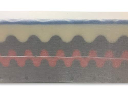 COMPOSIZIONE: Lo strato blu di 1,5 cm è SOFTFEEL, ultra traspirante fresco a celle aperte certificato HIGEN, non citotossico, con trama massaggiante a zone. Il secondo strato è Memory Foam alto fino a 6 cm, per una straordinaria sensazione rilassante effetto nuvola. Gli strati grigi sono in WaterFoam a zone differenziate per un sostegno ottimale. L'inserto rosso sagomato ad onda in WaterFoam ad alta densità, vera spina dorsale del materasso segue al meglio il corpo supportandolo correttamente.