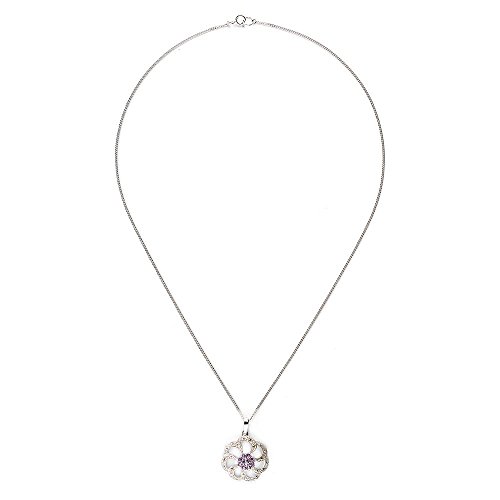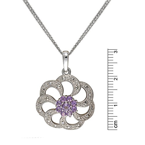 Esse Marcasite-Anello in argento Sterling placcato al rodio con ametista e Marcasite, a forma di fiore, lunghezza 46 cm