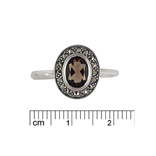 Esse Marcasite Anello solitario ovale, in argento Sterling, con quarzo sfumato
