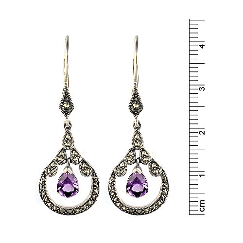 Esse Marcasite-Collana in argento Sterling con ametista e Marcasite, stile Art Nouveau, lunghezza orecchini: 4 cm