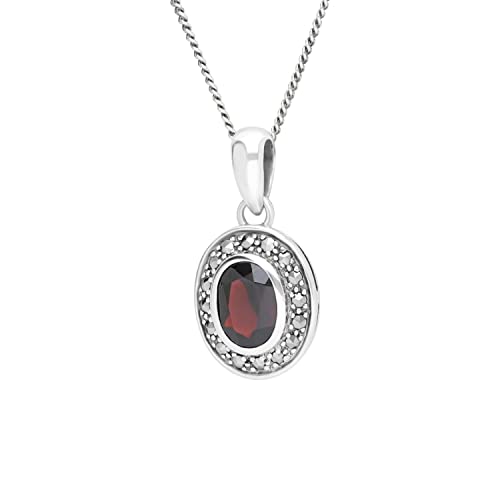 Esse Marcasite - Collana in argento Sterling con granato ovale e marcasite, 46 cm, Argento, granato