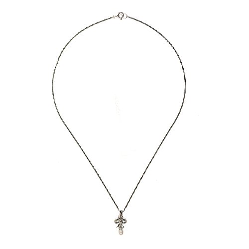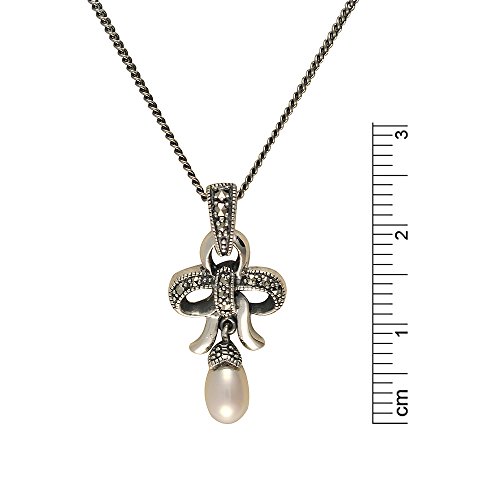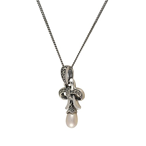 Esse Marcasite-Collana in argento Sterling con perla di fiume cinese stile e Marcasite, lunghezza 44 cm