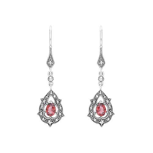 Esse Marcasite Donna 925 argento Pera marrone Granato Marcasite FINEEARRING