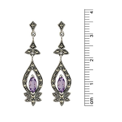 Esse Marcasite - Orecchini in argento sterling con ametista e marcasite, lunghezza 3,5 cm
