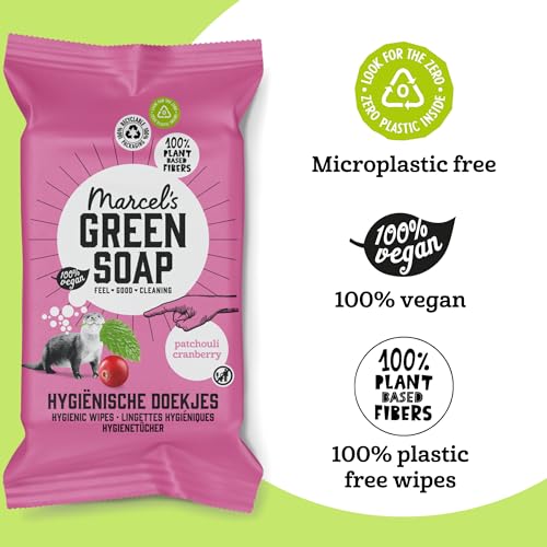 Marcel's Green Soap Salviette igieniche umide, 1 x 60 pezzi, patchouli e mirtillo a base di piante, ecologiche