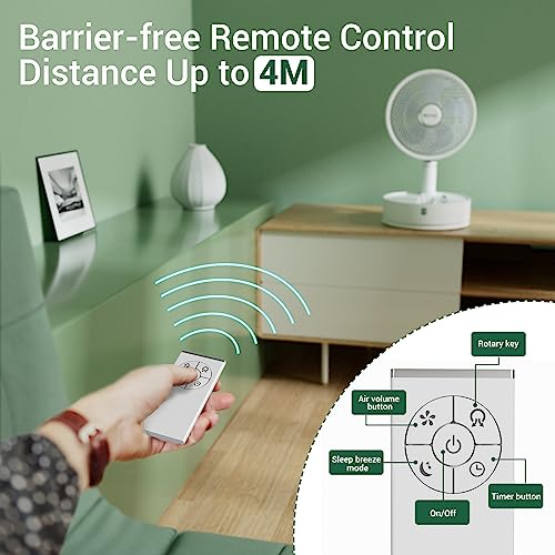 Marchpower Ventilatore Silenzioso Portatile Altezza Regolabile Pieghevole Ventilatore a Piantana con Telecomando e Timer, 5 Velocità Oscillazione 7200mAh Ventilatore Batteria con Borsa Ø10''/25CM