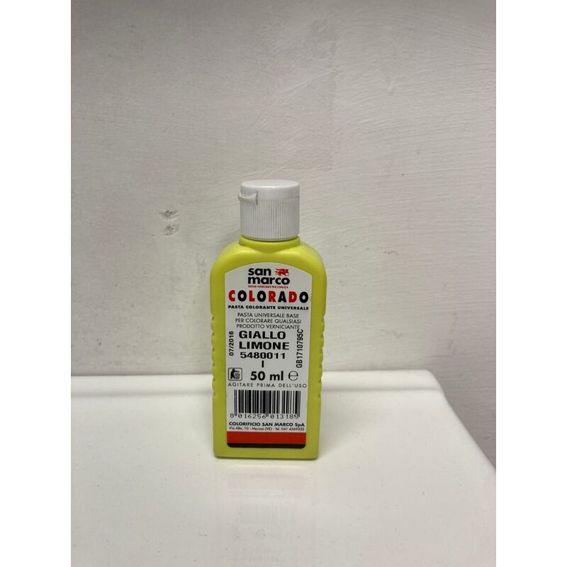 Paste coloranti Colorado pasta colorante giallo limone lt 0,05 Colorado è una serie di paste coloranti ad alta concentrazione ed ampia compatibilità, ideali per la colorazione istantanea mediante semplice mescolazione di idropitture, tempere, rivestimenti plastici, pitture alla calce ed ai silicati, smalti sintetici ed oleosintetici, antiruggini e fondi sintetici, fondi idrodiluibili, da applicare all'interno ed all'esterno. le paste colorado sono dotate di elevata forza colorante che consente di ottenere tinte di tonalità forte utilizzando bassi quantitativi, lasciando inalterate le caratteristiche chimico-fisiche del prodotto cui vengono aggiunte. indicazioni di impiego e' necessario agitare il contenitore della pasta prima di utilizzarla e di mescolare accuratamente il prodotto verniciante dopo la colorazione. tutte le paste sono perfettamente miscibili tra loro e possono essere aggiunte direttamente al prodotto da colorare in un quantitativo massimo del 6% (in volume) di aggiunta.