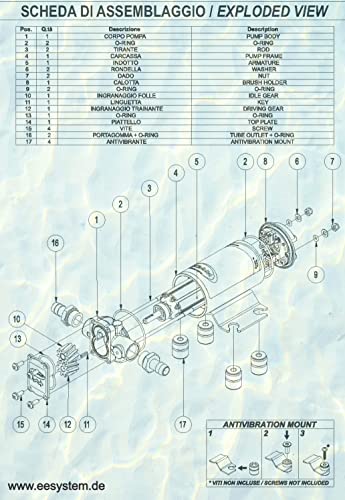 Una pratica pompa elettrica autoadescante con motore da 24 Volt. produttività 10 l/min, autoadescante 1,5 m, pressione 1,5 bar, peso netto 1,2 kg, tubo di aspirazione e pressione 12 mm. L'alloggiamento è realizzato in solido ottone pressofuso, gli ingranaggi in bronzo e l'albero della pompa in acciaio inossidabile di alta qualità. Il portascopino è montato all'interno del coperchio impermeabile, anche il passaggio del cavo è impermeabile. Guarnizioni in FKM e O-ring in NBR