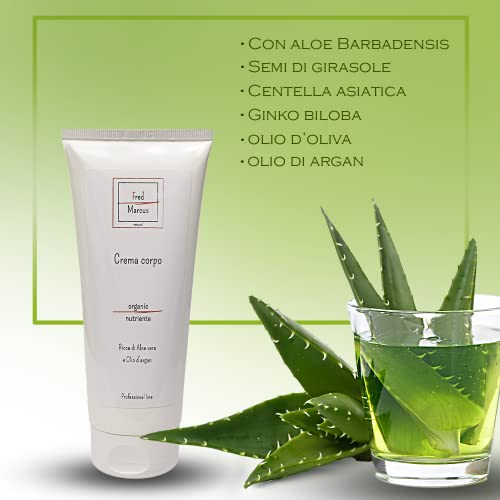 FRED MARCUS Crema Corpo 200 ml Con Olio Di Argan, Aloe Vera e Olio Di Oliva, Arricchita Con Centella Asiatica e Ginkgo Biloba 100% Da Agricoltura Biologica, Made in Italy.