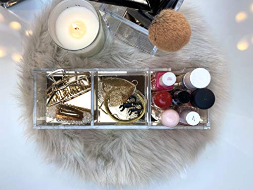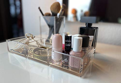 Dany Marcus - Organizer da scrivania in materiale acrilico trasparente con dettagli dorati, 3 scomparti