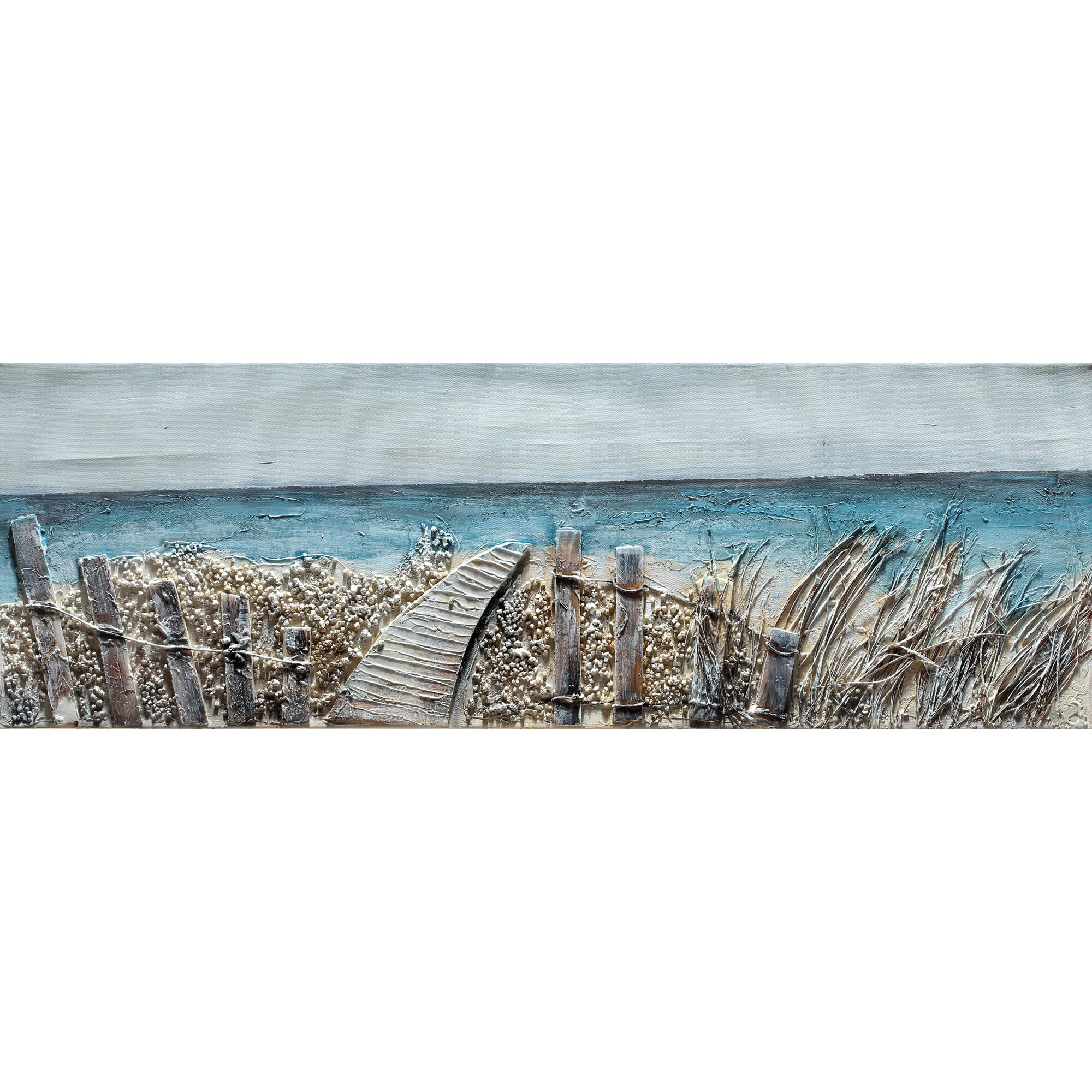 Dipinto A Mano Su Tela In Cotone Che Ricorda Il Paesaggio Marino. Perfetto Per Dare Un Tocco Marittimo Alle Tue Pareti. Facile pulizia. Rimuovere la polvere con un panno antistatico non bagnato. L'asta è realizzata in legno naturale ed è realizzata in Italia. Si può appendere o appoggiare, per adattarsi allo spazio che hai a disposizione