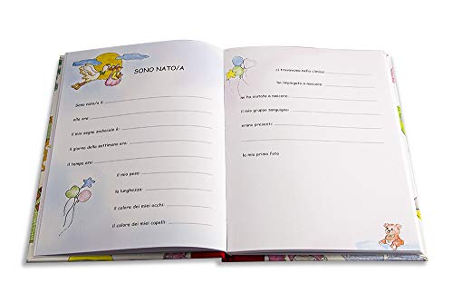 Interno composto da 32 pagine con illustrazioni a colori dove annotare tutti i ricordi del primo anno di vita della bimba